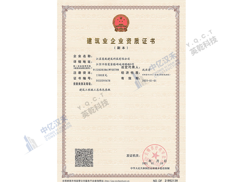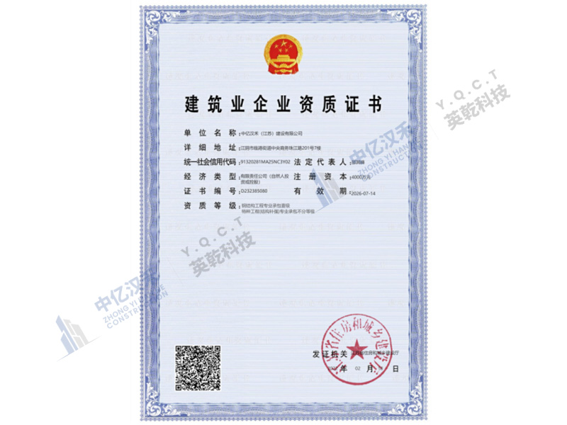 Yingqian Technology-Steel Structure Engineering Professional Contracting Level II